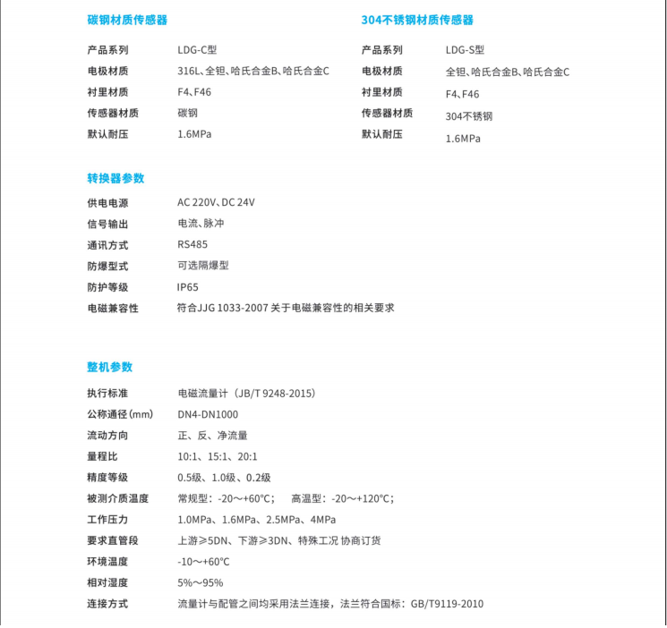 LDG型电磁流量计是一款专用于测量腐蚀性介质的流量计量仪表,其测量电极可用特殊耐腐材料制成,可有效抵御盐液、碱液、氨水、硫酸镍/钴/锰/铜等多种强腐蚀性流体侵蚀。
