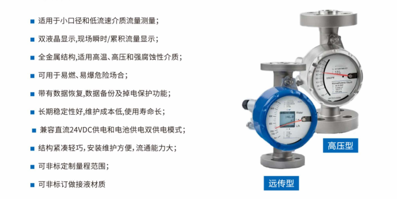 采用可变面积式量原理,用于连续测量封闭管道中的液体和气体的体积流量。金属管浮子流量计具有结构坚固可靠、使用范围广、准确度高、价格便宜,能适用多种场合的流量测量等特点。本系列为现场智能指示性,有下进上出、左进右出和下进侧出三种安装形式。可广泛用于国防、化工、石油、冶金、电力、环保、医药和轻工业等部门的液体、气体流量测量。